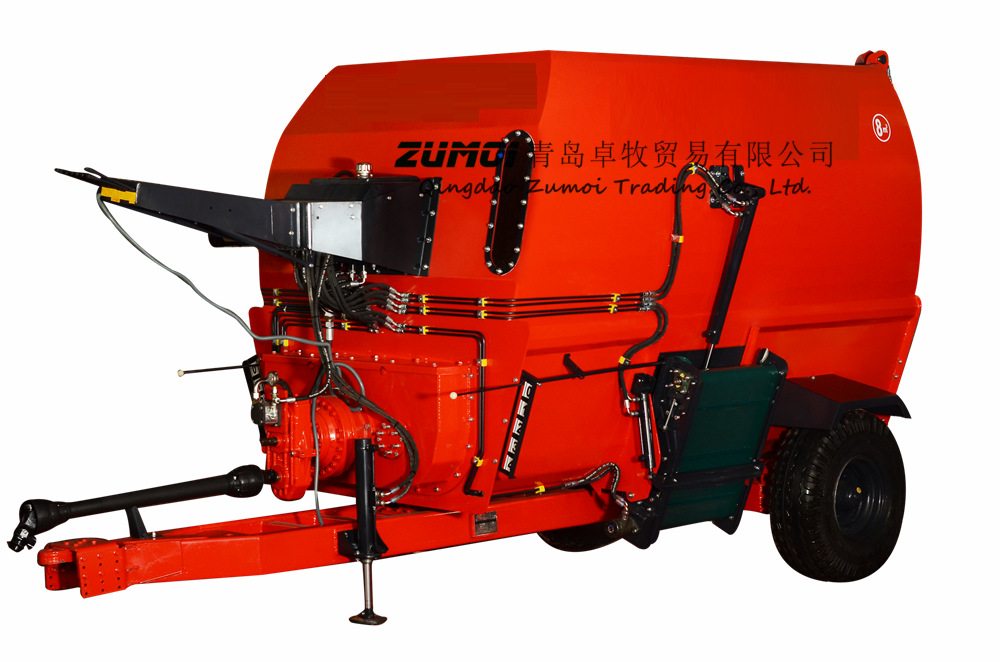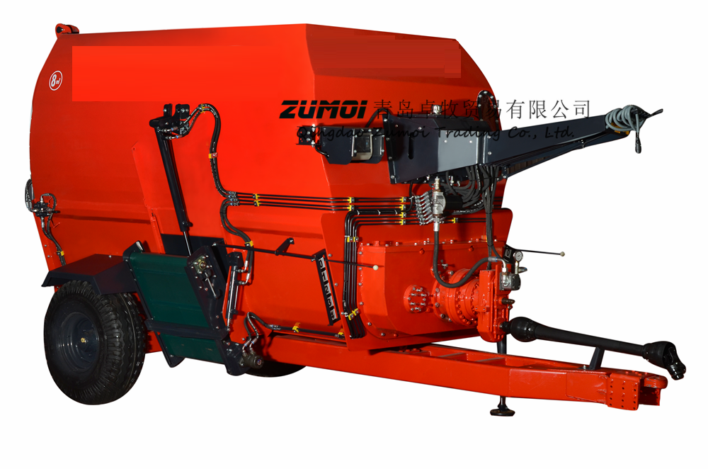 TMR飼料攪拌機,養(yǎng)牛場專用,8立方容量 用于牲畜養(yǎng)殖場中生產(chǎn)混合均勻的飼料。特殊設(shè)計的合金刀頭可以幫助您輕松的在短時間內(nèi)切割大捆干草,并可將粗飼料與精飼料混合均勻,提高了飼料的適口性,促進牛羊等牲畜攝入均衡營養(yǎng)。